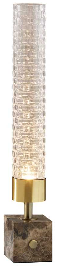 Catch the eye of all your guests with the Harriet LED Table Lantern. A cube shaped brown marble base holds up a tall, skinny textured glass cylinder shaped shade. The warm, energy efficient LED light reflecting off of the carefully cut glass creates a striking, artistic glow.Read More
