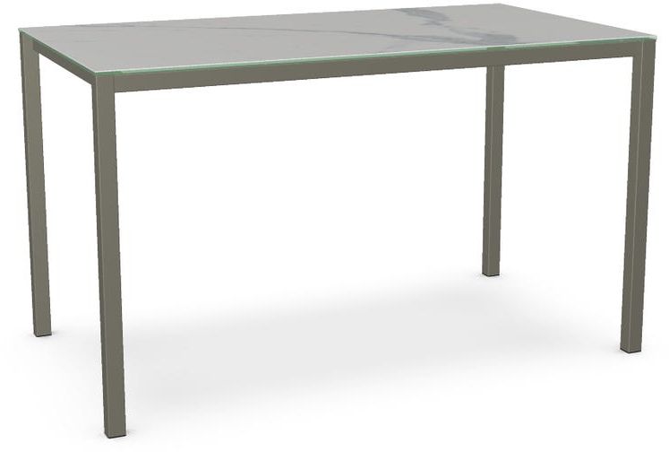 Italian porcelain on a glass tabletop with a Statuario marble finish.