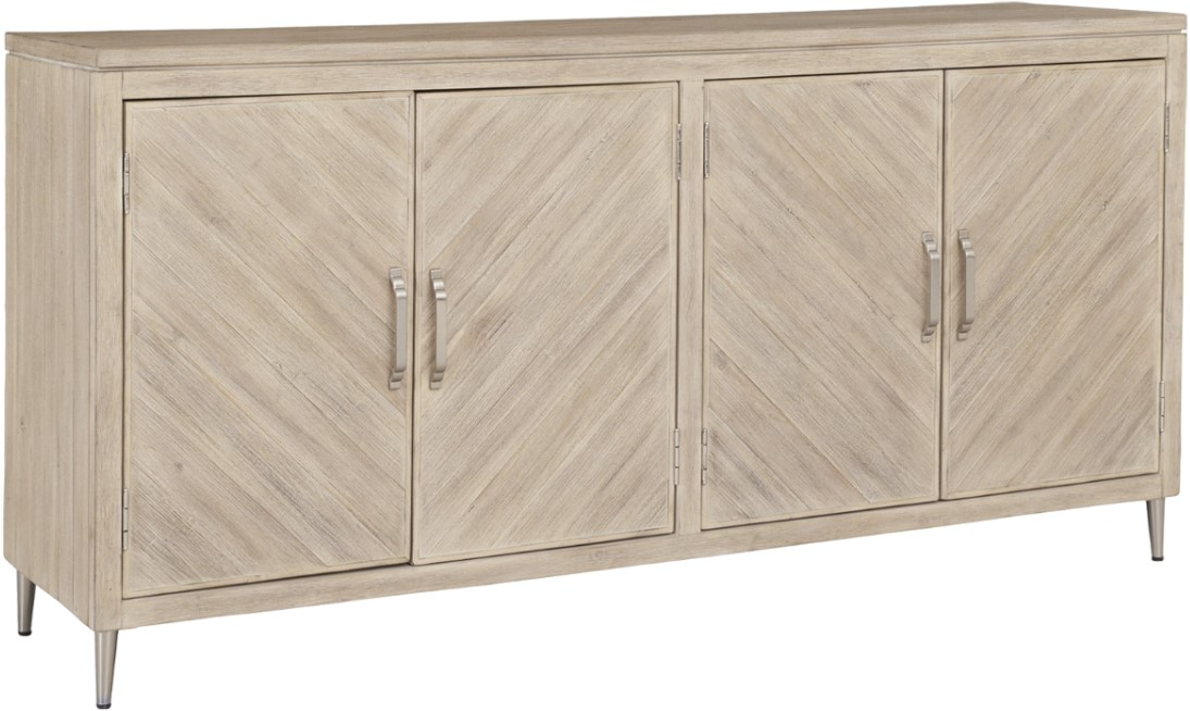 The hallmark of this design is the natural Biscotti finish and the use of texture, wood grain and inlay patterns to subtly tease the eye. The brushed stainless metal legs and uniquely designed hardware provides a subtle contrast. The transitional style will fit flexibly into multiple interior styles and spaces.Read More