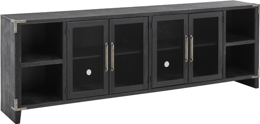 This Media Console is a piece of transitional style, it offers a sleek and versatile look that can complement various interior décor styles. Features 4 doors and 6 shelves and is equipped with cast metal hardware. Also, cable management, allows you to neatly route and hide wires and cables, creating a clean and clutter-free entertainment area.Read More