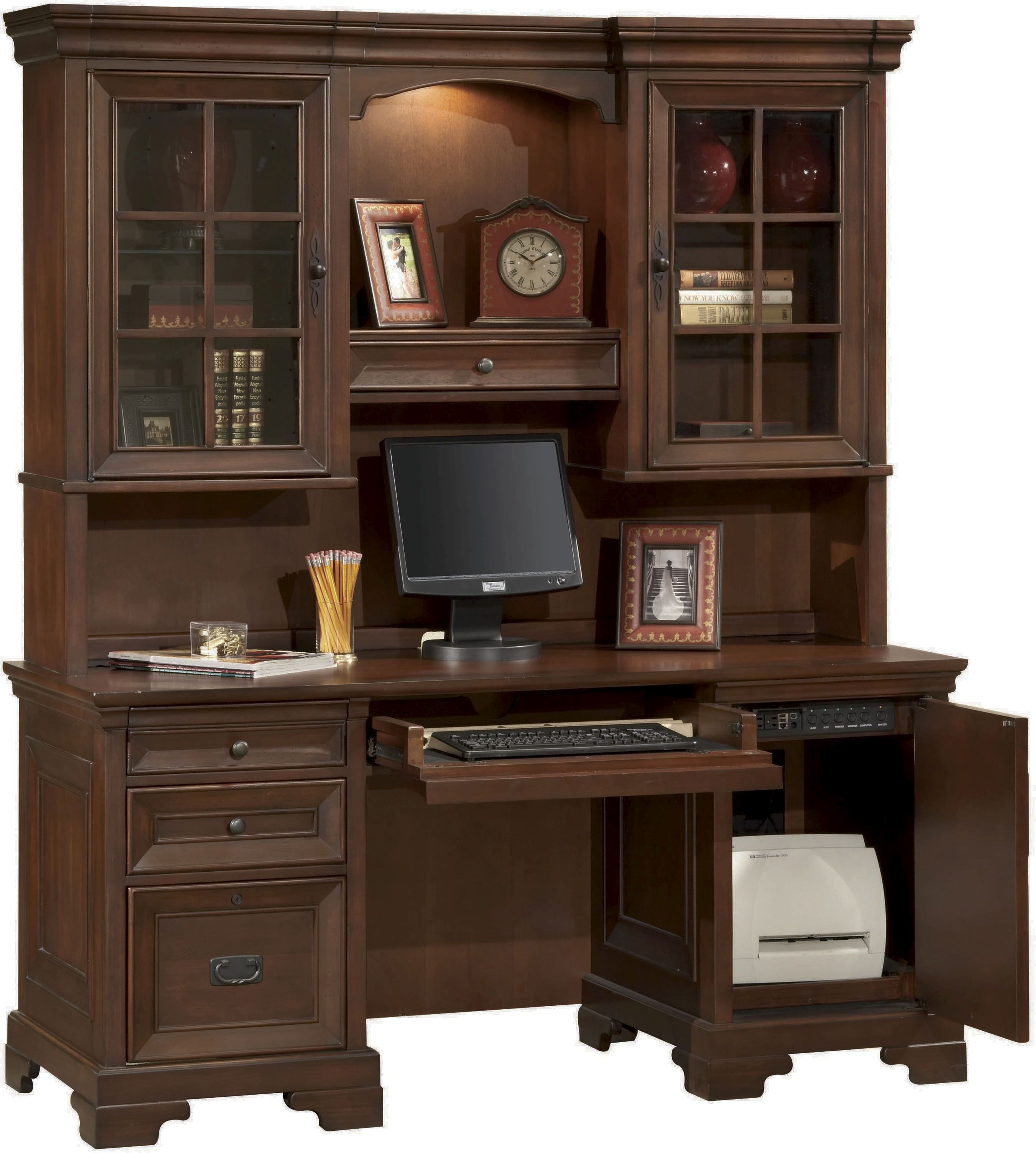 Large Monitors: This hutch is designed with todays electronics in mind, with a large opening capable of fitting multiple or larger sized monitors