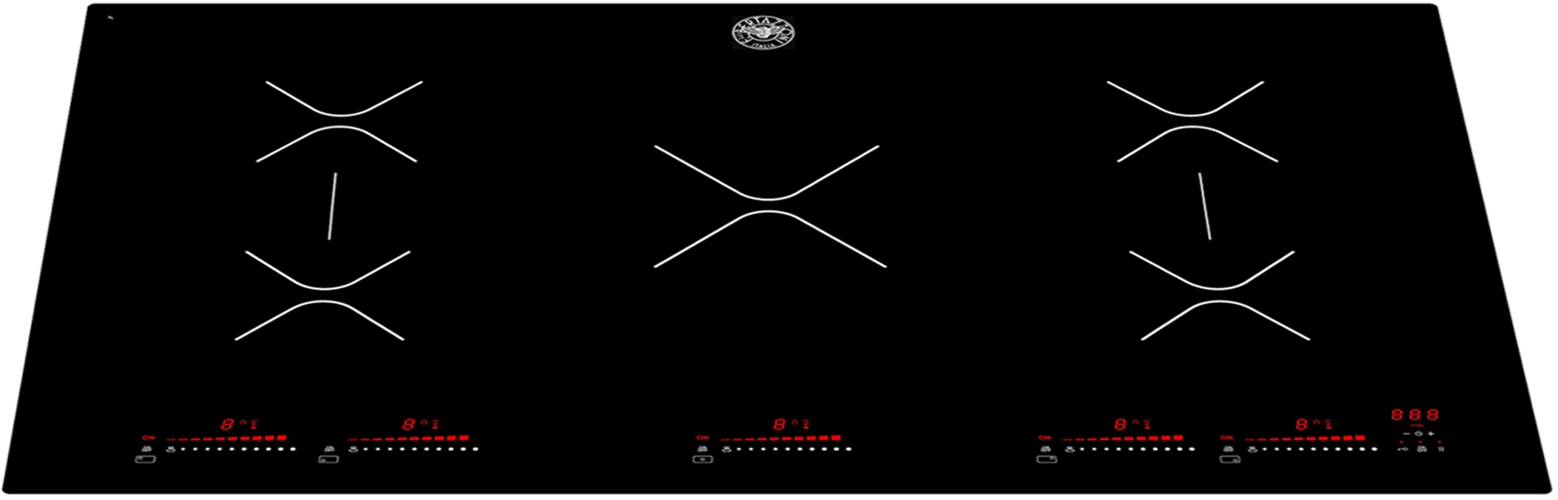 Bertazzoni rangetops and cooktops are superb cooking appliances designed, engineered and made in Italy. All Bertazzoni appliances integrate seamlessly into style-harmonized suites for a true, high-performing kitchen. Bertazzoni touch-control induction cooktops represent the fastest and most energy-efficient way to cook. With total output of up to 11100 Watts and booster function, full power is available instantly and is delivered directly to the cookware, eliminating inconvenient heat-up time and wasted energy. The induction cooktops come with 4 or 5 individually-controlled extra-large heating zones on a beveled black glass main top. The lateral zones can be bridged to form a larger heating area. Cleaning is super-easy, just spray with glass cleaner and wipe the glass surface clean. All Bertazzoni appliances are covered by a 2-year warranty. Products and packaging are 99% recyclable.