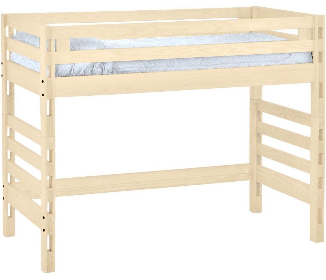 With built-in ladders at both ends, this loft bed offer a cleverly built compact design to save you even more space. The sturdy, wide ladder ends make it easy for kids to climb up and down. Full length removable guardrails are included for both sides of the upper bed. All bunk beds and beds have been tested to accommodate over 450 pounds and are recommended for adult use. Options include extra-long for big kids and a taller version to allow 8” more headroom under the bed for comfortable seating. Plenty of room for a desk and chest. The top of an 8” thick mattress will be 57” off the floor. (65” on Tall models).