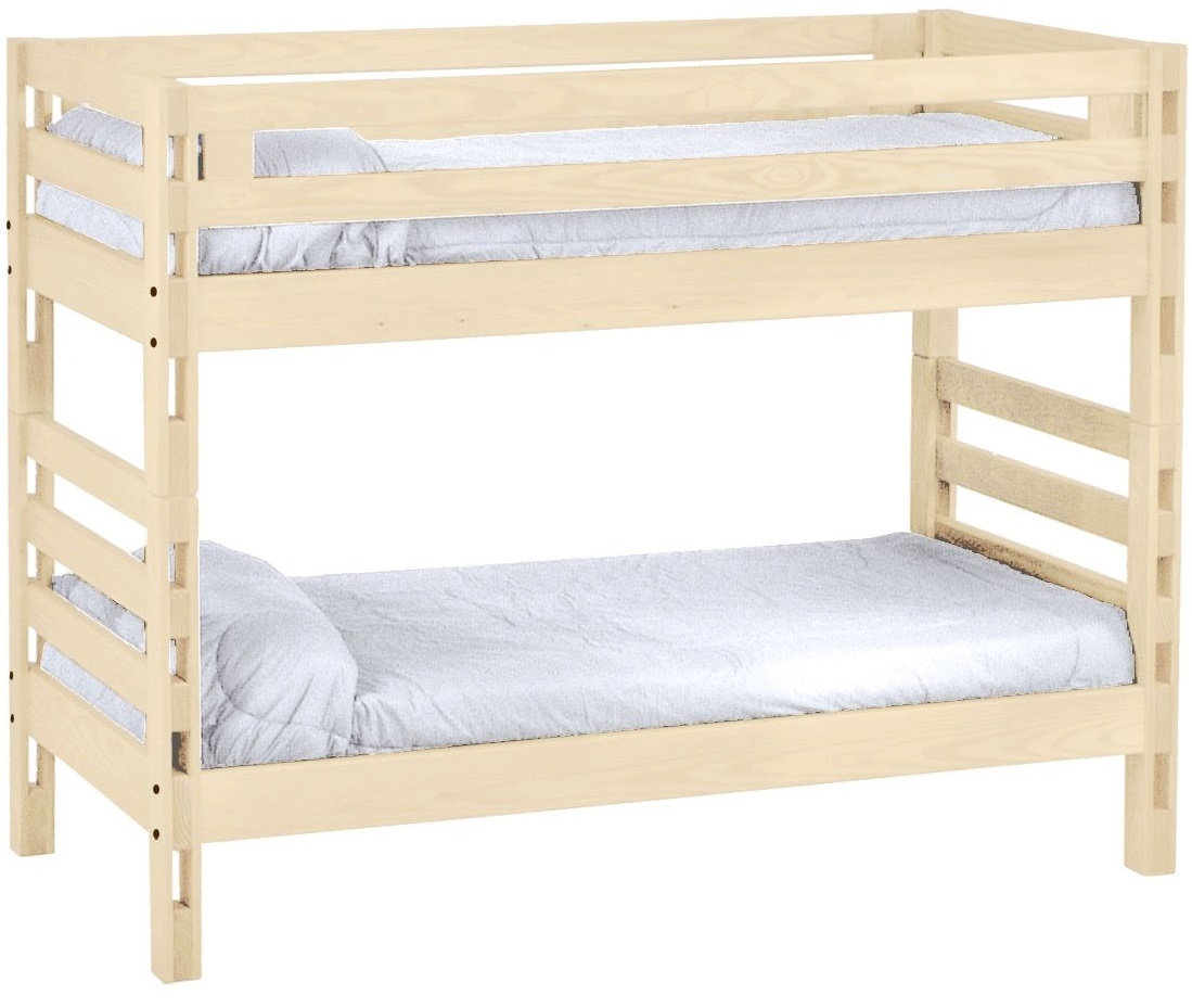 With built-in ladders at both ends, these bunk beds offer a cleverly built compact design to save you even more space. The sturdy, wide ladder ends make it easy for kids to climb up and down. Full length removable guardrails are included for both sides of the upper bed. The top of an 8” thick mattress will be 21" off the floor on the lower bed and 57” off the floor on the upper bed. All bunk beds and beds have been tested to accommodate over 450 pounds and are recommended for adult use. Options include a taller version to allow 8” more headroom under the bed for comfortable seating. Add optional drawers or a trundle bed for maximum use of your floor space
