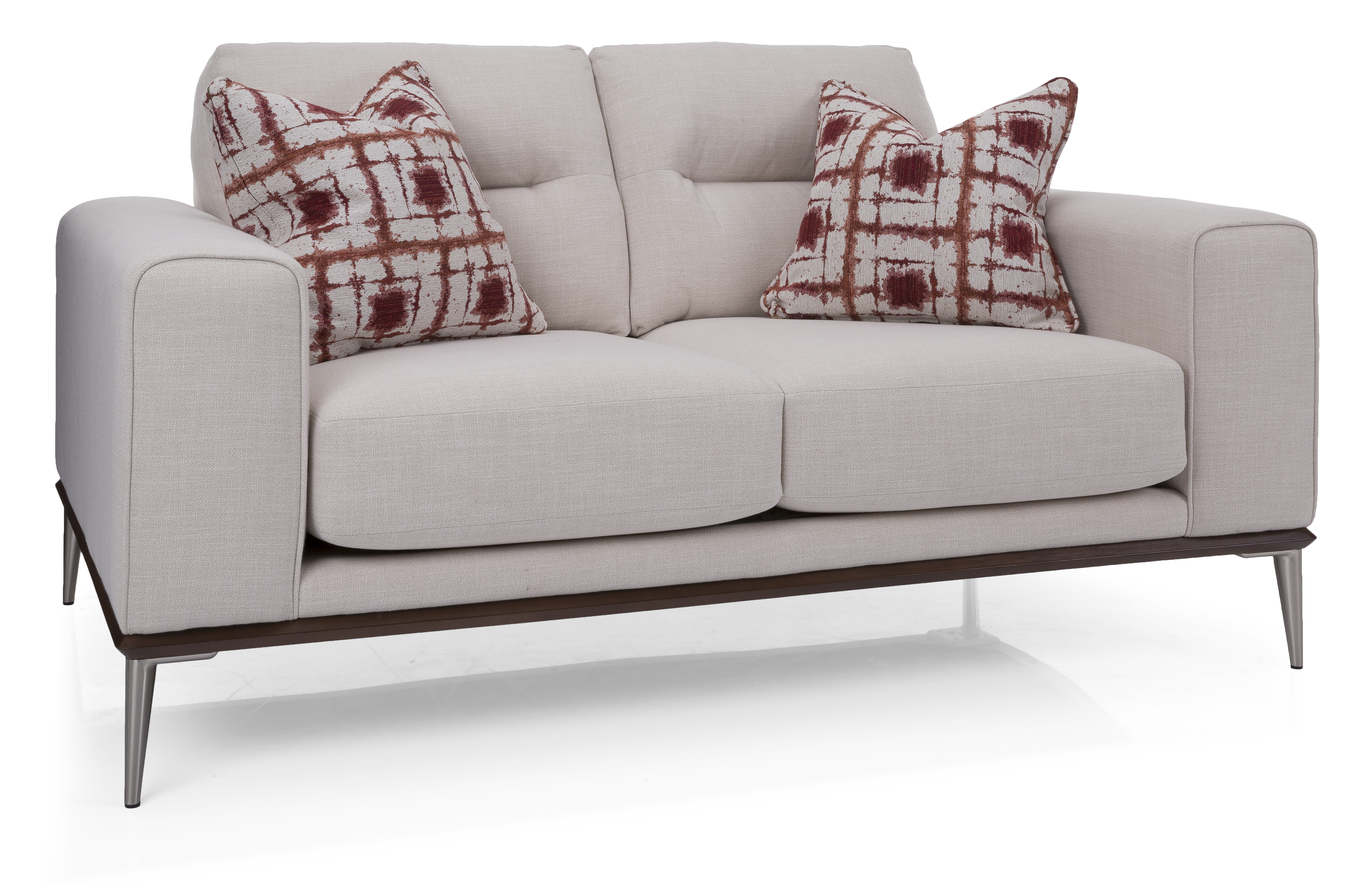 Decor-Rest® Furniture 2030 Grande Ice Loveseat features semi-attached back, box seat with regular stitch. This sofa has sinuous spring construction and a wood trim base which add integrity to the structure. The 6.7" Metal Cone Leg adds to the style of this loveseat.