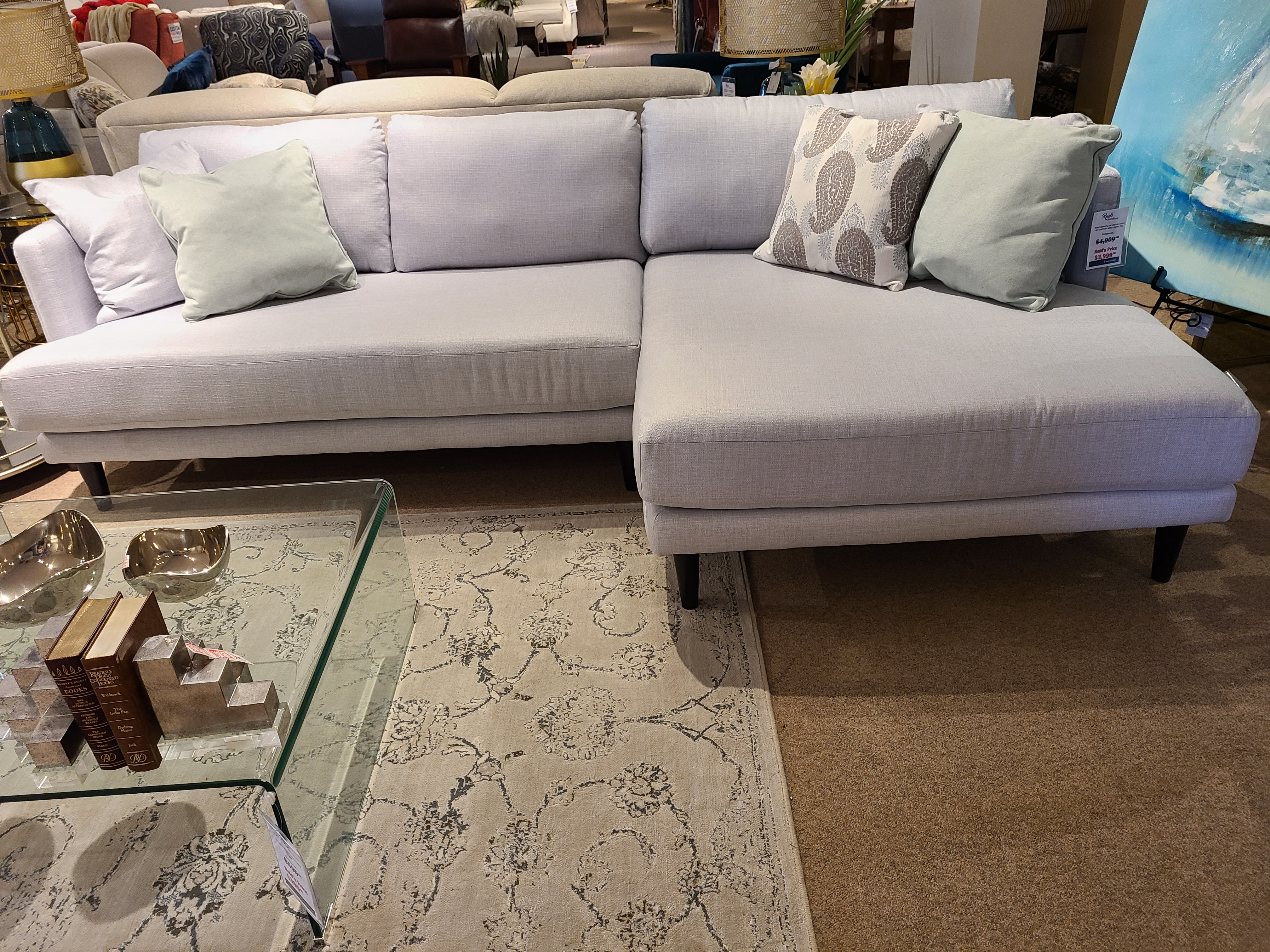 This chic sectional was built with sinuous spring construction, a loose back, and t-box seat with top stitch. It is highly customizable, offering a choice of different leg shapes. It boasts premium high resiliency 2.5 lb seating foam.Read More