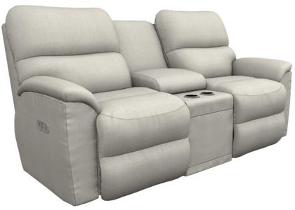 The Brooks Power Reclining loveseat with headrest and console blends cool casual style and utility. Tapered arms accent cushy backs and chaise seats with head-to-toe customizable comfort. The center console keeps drinks, remotes and devices nearby.Read More