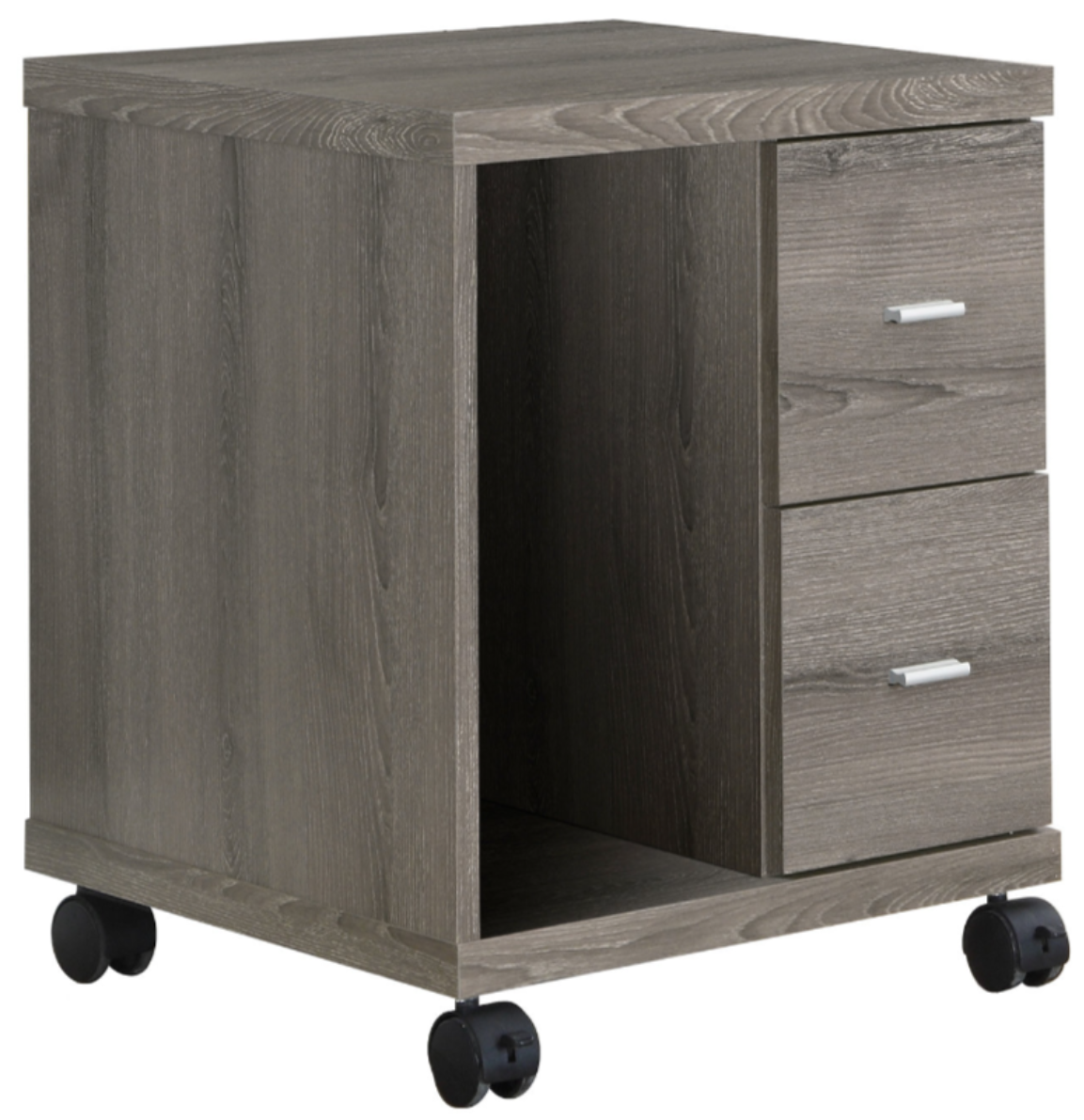 This mobile stand is the perfect combination of contemporary design and functionality. Finished in a dark taupe wood-look with sleek lines and thick panels, this cabinet will add modern appeal to any home office.Read More