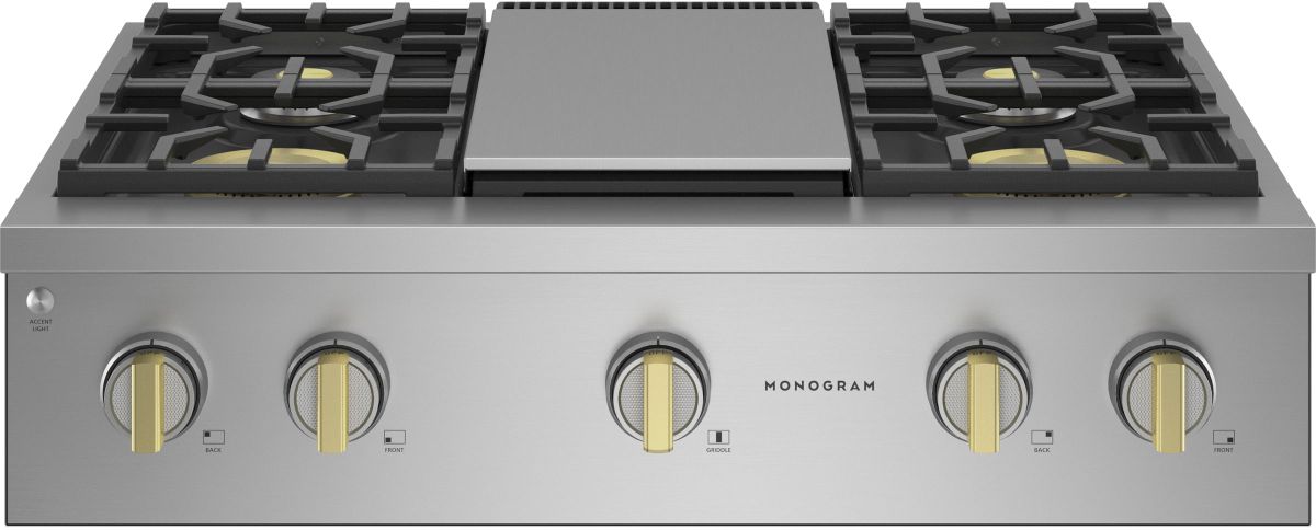 With an unmatched attention to detail, all knobs on the new Monogram Pro ranges and range tops come with solid brass accents