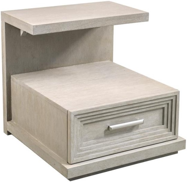 Cascade offers a fresh look with detailed shapes and refined styling. Inspired by the trend of modern coastal interior design directions, the collection makes it easy to bring home the feeling of vacation with a light and breezy style. A minimalistic approach and modern sleekness convey the collection's relaxed attitude. Floating plinth bases give the group a light and airy feel while a stepped-down border on drawer faces provides a cascading effect and architectural detail. Clean, fresh color palette: a soothing tone of Dovetail create a modern, relaxed feel. Subtle wire brushing adds a textural element. Brushed nickel bar pulls add a touch of shimmer to its naturally soothing palette.
