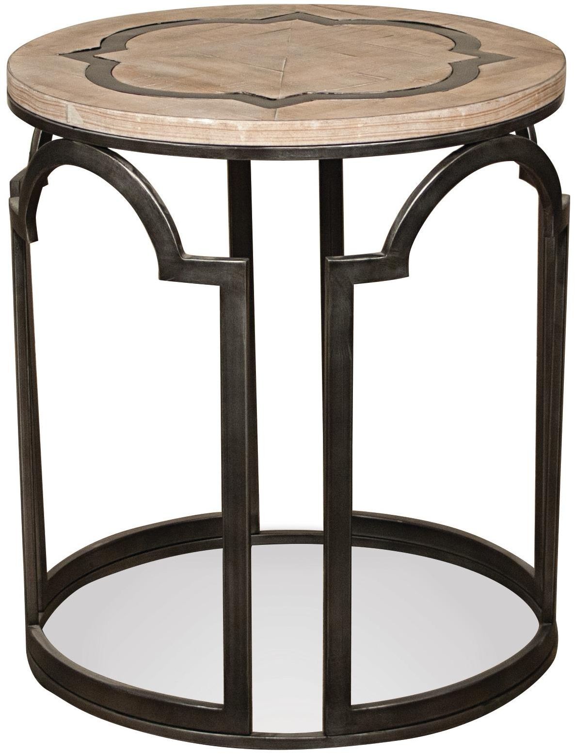 Top is constructed of reclaimed fruit baskets and a metal inlay, all in a decorative quatrefoil pattern. Base is made of metal in an ornamental-cut pattern.Read More