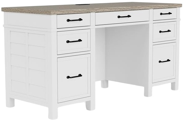 Introducing the Finn Executive Desk by Riverside Furniture. Elevate your workspace with the Finn Desk's refined design and impressive functionality. With seven drawers at your disposal, this desk offers ample storage for your organizational needs while exuding a timeless charm. Experience the perfect blend of style and utility with Riverside's Finn Executive Desk.Read More