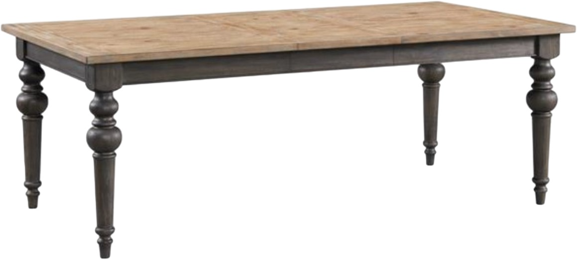 The Riverside Furniture rectangular shaped dining table is a piece from the Harper Collection. This dining table is constructed of hardwood solid and Pine veneer with an Snowy Desert finish on the table top and a Matte Black finish on the table base.Read More