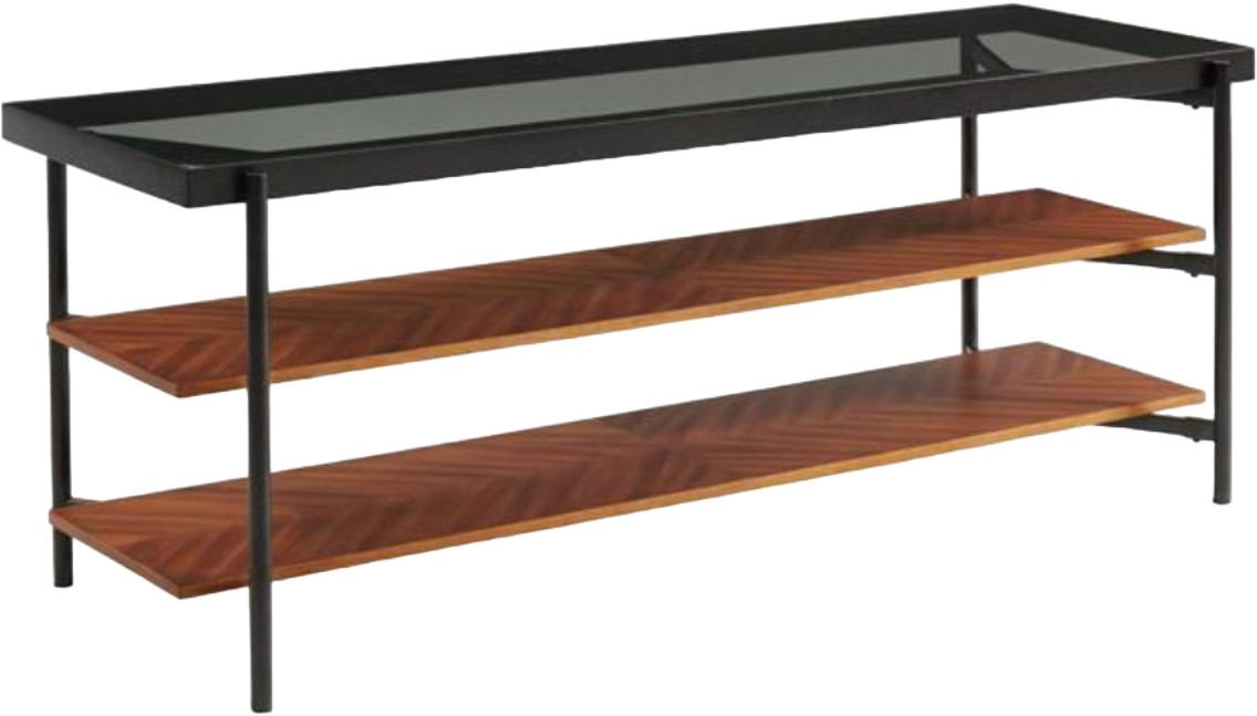 Mixed materials, Lennox is modern in styling with a minimalistic appeal. The focal point of this group is the starburst veneered shelf that is visible through the smoked glass top.