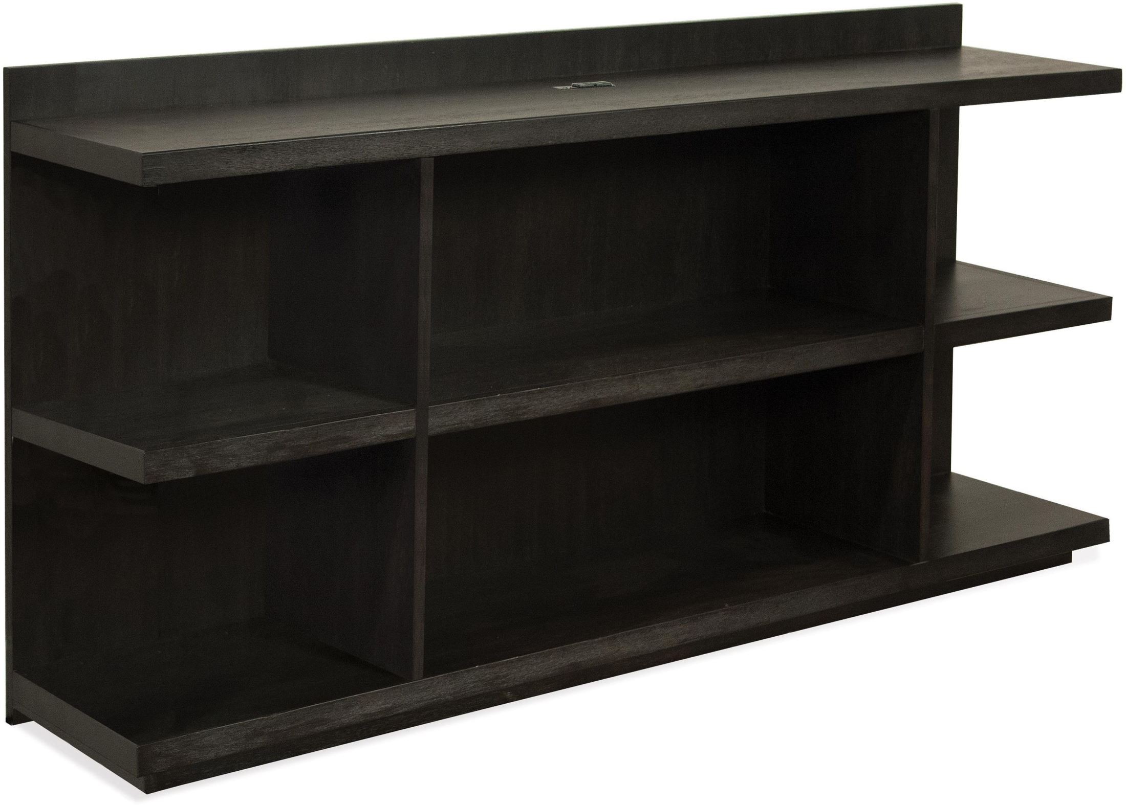 Constructed of hardwood solid and Acacia veneer. Electric/USB outlet bar in top panel. Each open section has a fixed center shelf.Read More