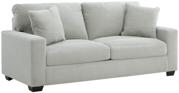 The crisp neutral hue and striking design details of this sofa create a living room that expertly reflects your modern taste. For irresistibly cool textural appeal, the ultra-soft fabric is enhanced by a small-scale corded look. With a clean-lined silhouette complete with track arms.Read More