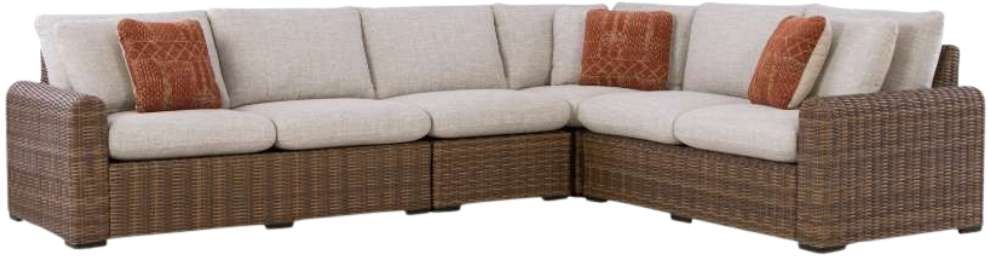 Get back to nature with the relaxed styling of this outdoor sectional. Crafted with a sturdy aluminum frame and resin wicker, it offers exceptional durability and style. The sectional's plush cushions, covered in high-performance Nuvella® fabric, are as resilient as they are attractive. Sounds like fabulous form and function to us.Read More