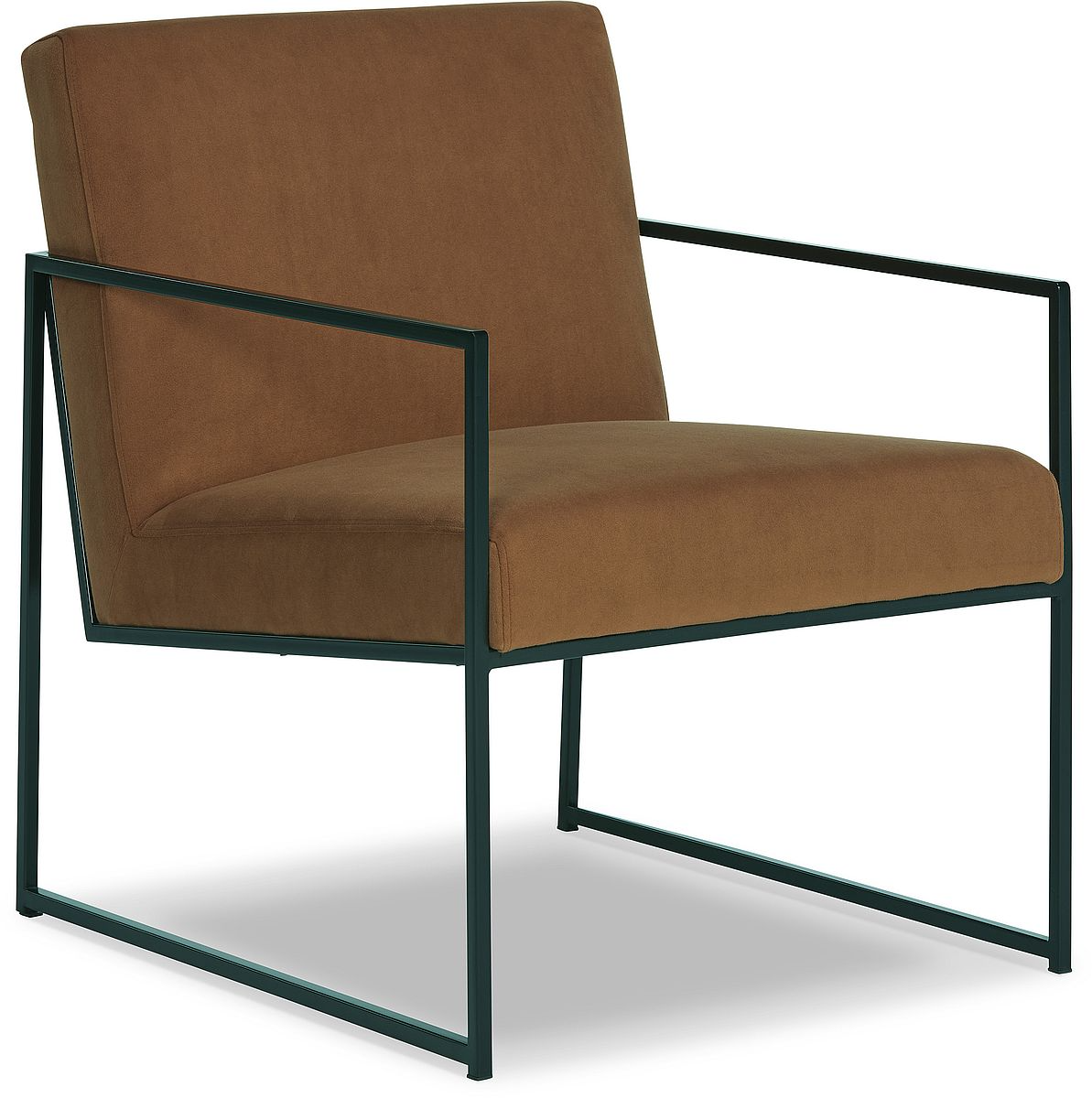 Dress up your reading nook or den with the decidedly contemporary stylings of this accent chair. Spice-hued velvet fabric provides a pop of soft color while remaining reserved and refined in appearance. A streamlined metal frame polishes off the posh design.Read More