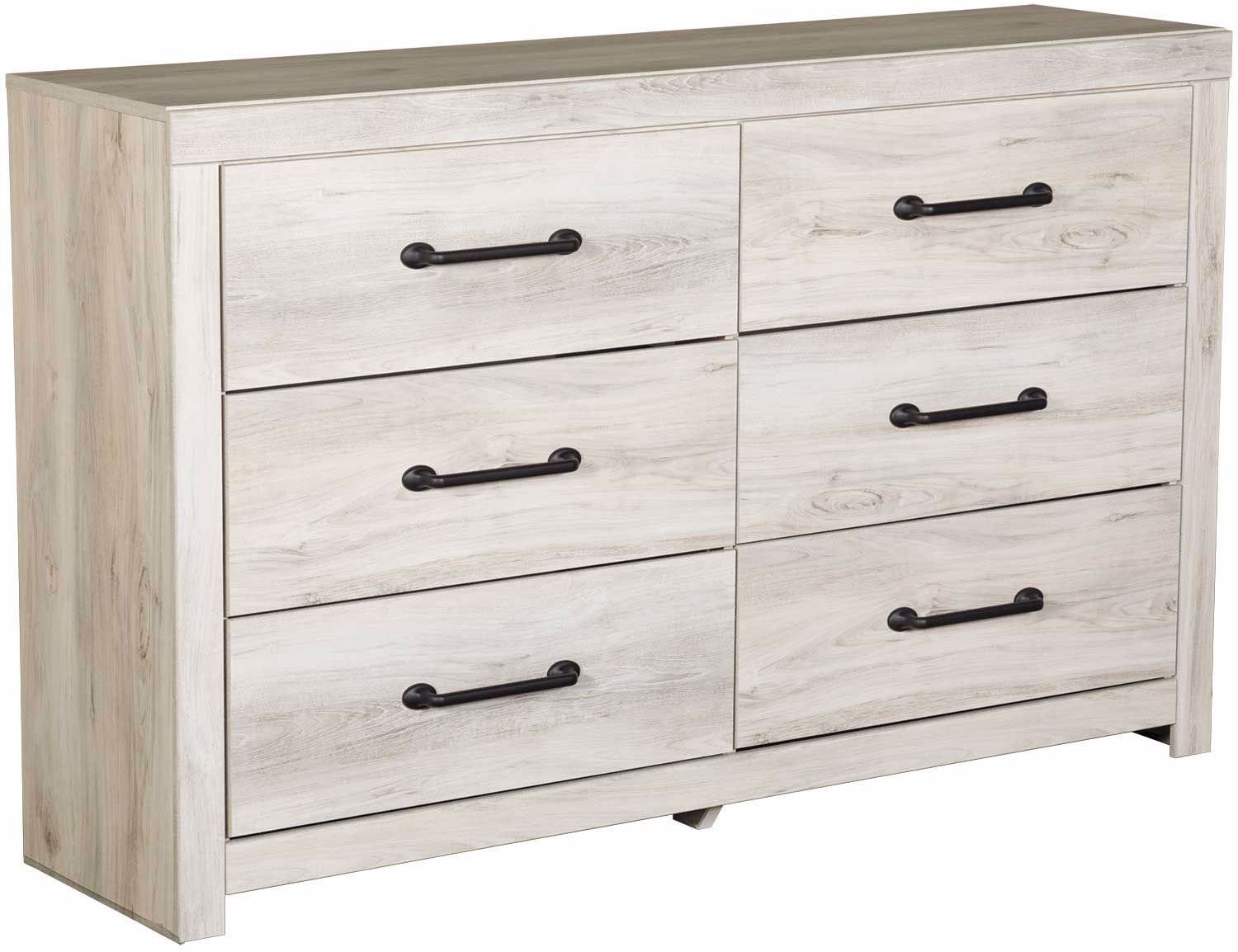 This Cambeck dresser features 6 smooth-gliding drawers lined with faux-linen laminate. Long metal drawer pulls accentuate the look of your room.