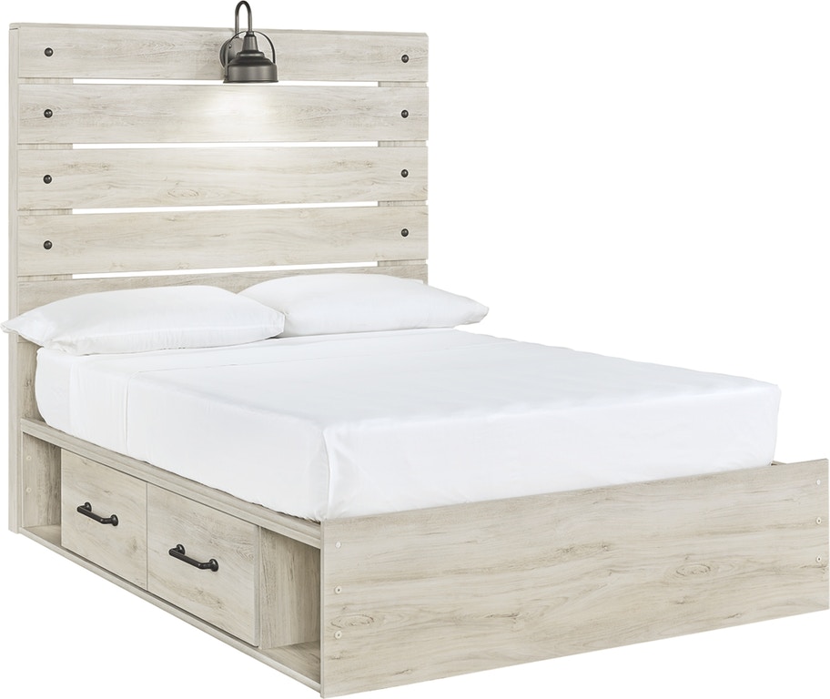 What a delightful take on rustic industrial style. Whether modern loft or modern farmhouse, this full panel storage bed makes itself at home. The wispy whitewash palette enhances without covering the grain for that weathered look you crave.Read More