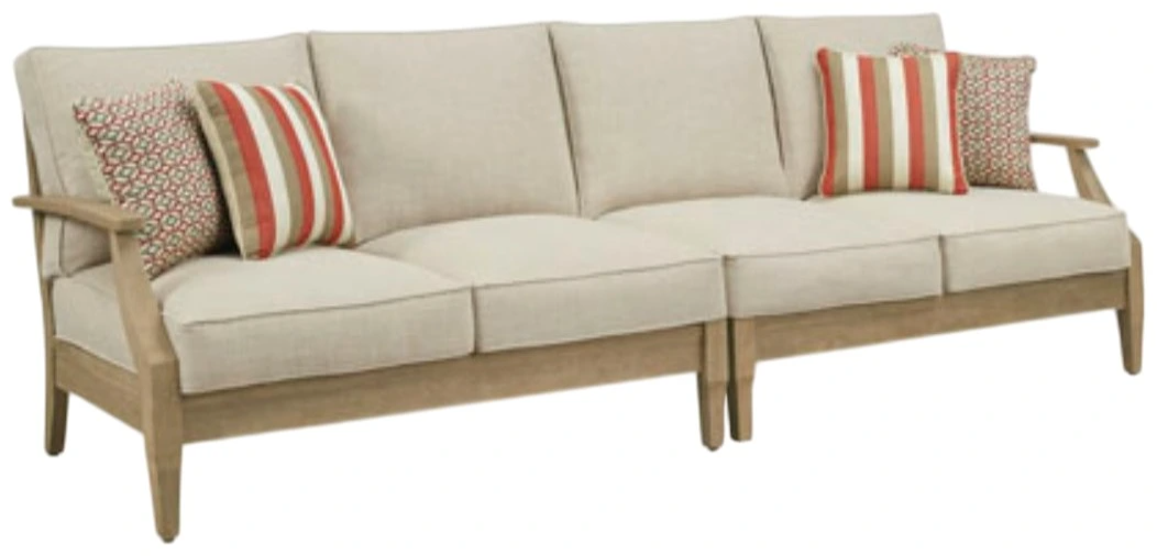 The Clare View sectional brings breezy outdoor comfort with its durable eucalyptus wood frame and an antiqued teak color finish. Beige cushions offer a soft, neutral contrast, while slat styling and weather-resistant materials make this sectional a stylish and reliable choice for outdoor lounging.Read More