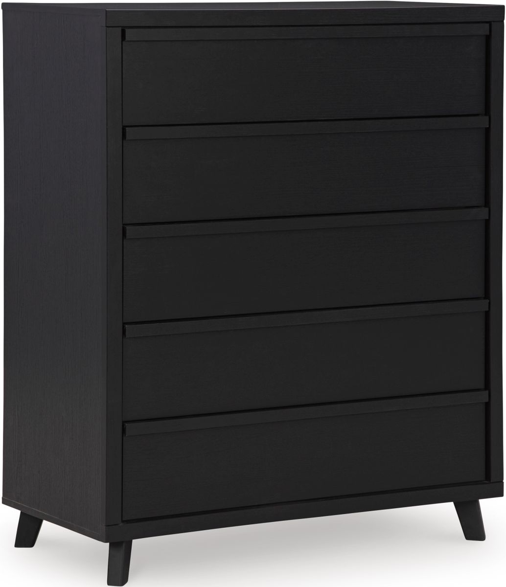 Sophisticated style for the savvy shopper. This chest of drawers prioritizes affordable, on-trend design. Its subtle replicated texture recalls the natural beauty of wood, highlighting the slatted styling. And a matte black finish savvily suits different approaches to modern aesthetics.Read More