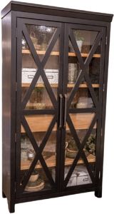 The Signature Design by Ashley Ridgester black/light brown display cabinet offers functional storage with elegant style, featuring glass doors, spacious shelving, and a contrasting finish. Its sturdy construction and versatile design make it ideal for displaying décor, dishes, or collectibles in any room.Read More