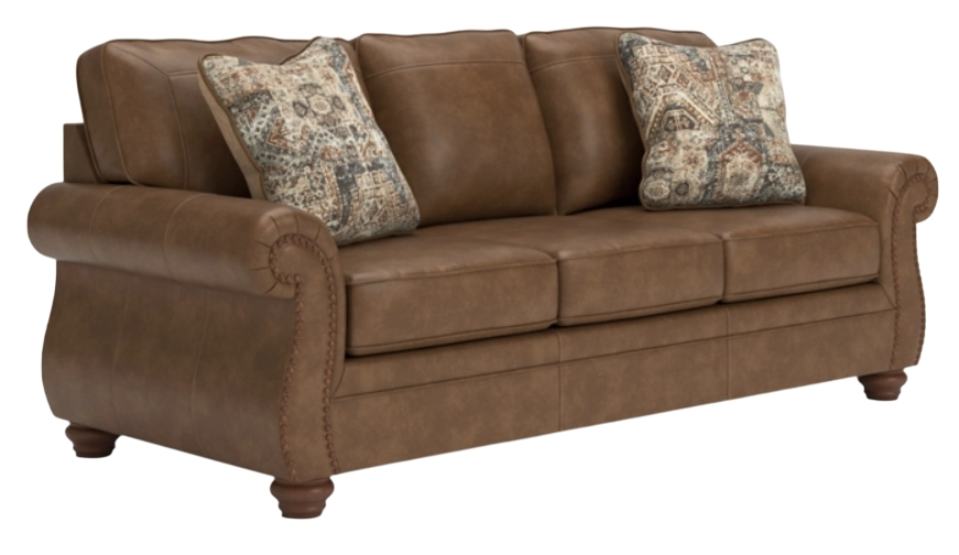 Everyone can have the best seat in the house with this sofa. Its nailhead trim puts the finishing touches on the traditional roll arms you love. Comfy, durable cushions—wrapped in a rustic yet sophisticated faux leather—keep you feeling relaxed.Read More
