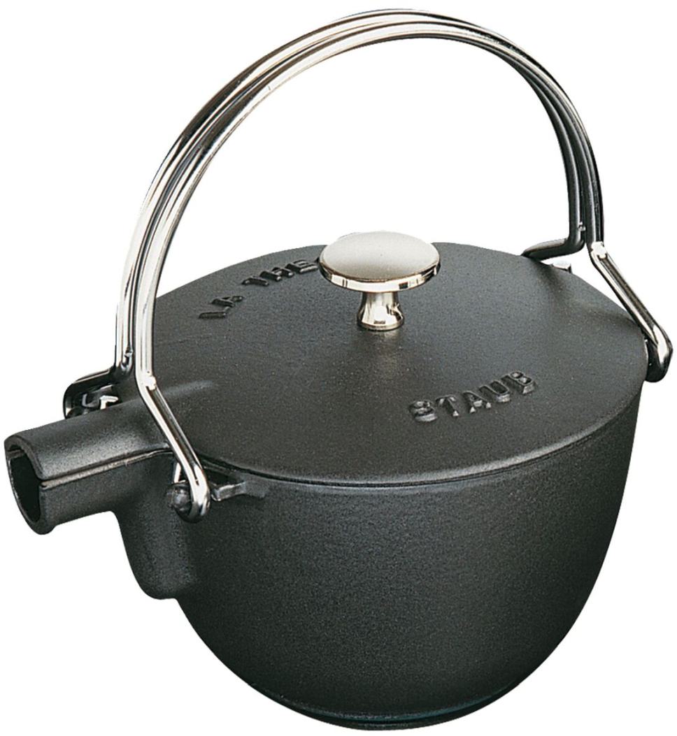 This kettle has a diameter of 16.5 cm, a height of 18 cm and a capacity of 1.15 liters. It is made of cast iron with black enamel inside. It is perfect for tea, as cast iron stores heat excellently and keeps the tea warm for a long time. Enameled cast iron is also very durable, extremely robust and easy to clean. The Staub kettle will look classy at a family tea party thanks to its design and colour and it will complete your kitchenware. Try some new teas in your Staub kettle and pour with style from your enameled pot.
