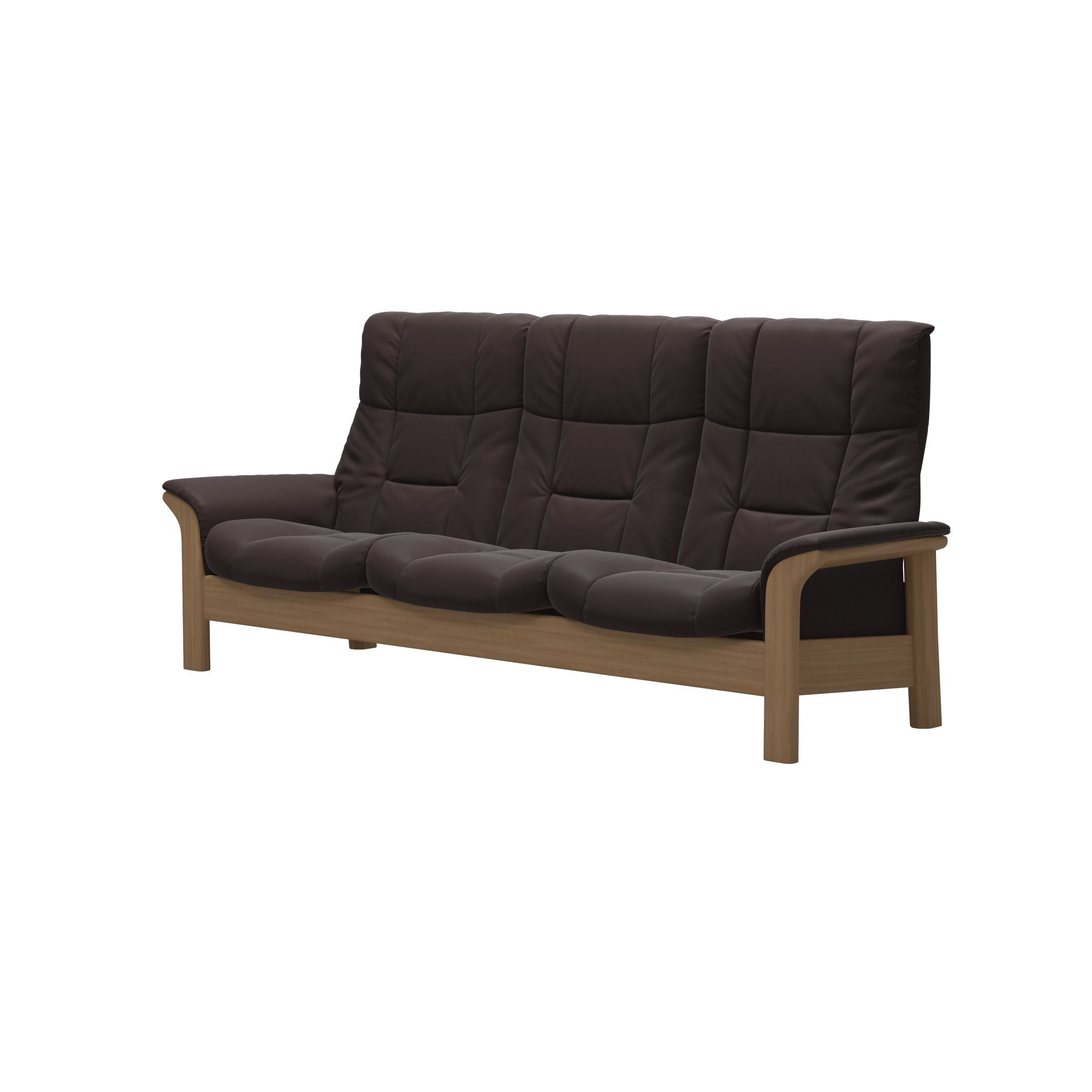 Gentle curves, padded arms and a supple seat, this sofa is as sleek as the name implies. The Stressless® Buckingham offers an invitation to pure relaxation in a classic design with details in wood. Individually reclining seats, available in both high and low back, ensuring maximum support for the entire body.