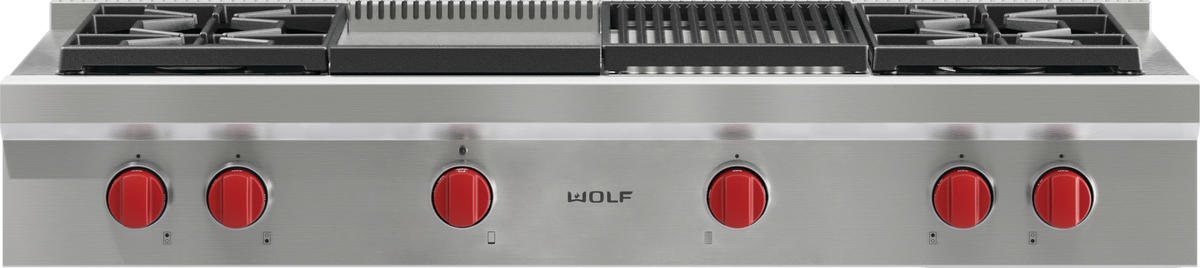 Match other Sub-Zero®, Wolf®, and Cove products with heavy-gauge stainless steel and signature red infinite control knobs