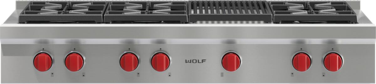 Match other Sub-Zero®, Wolf®, and Cove products with heavy-gauge stainless steel and signature red infinite control knobs